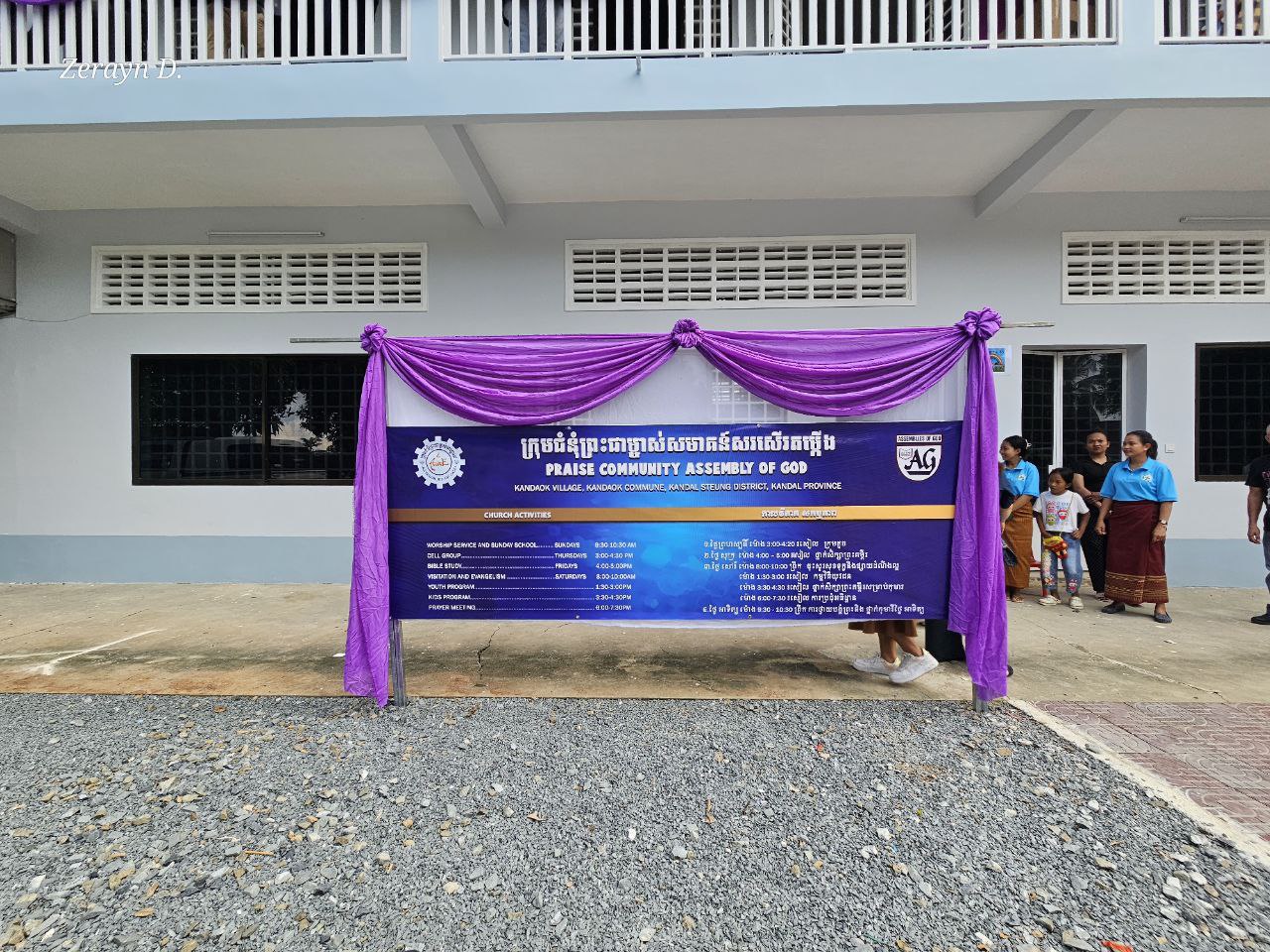 On this momentous occasion, both the local Christian congregation and curious onlookers from the wider village converged to witness the unveiling of a new era for The Praise Community Assembly of God Building, a metamorphosis years in the making. Fellow expats, children of the community, and local Khmer residents gathered for a joyous celebration of the renovated building. The occasion marked by a ribbon cutting, a dedicatory marker unveiling, and a thanksgiving worship service, brought together individuals from different walks of life to pay homage to the progress made through intertwined spiritual effort, cross-cultural collaboration and a collective spirit of gratitude.
